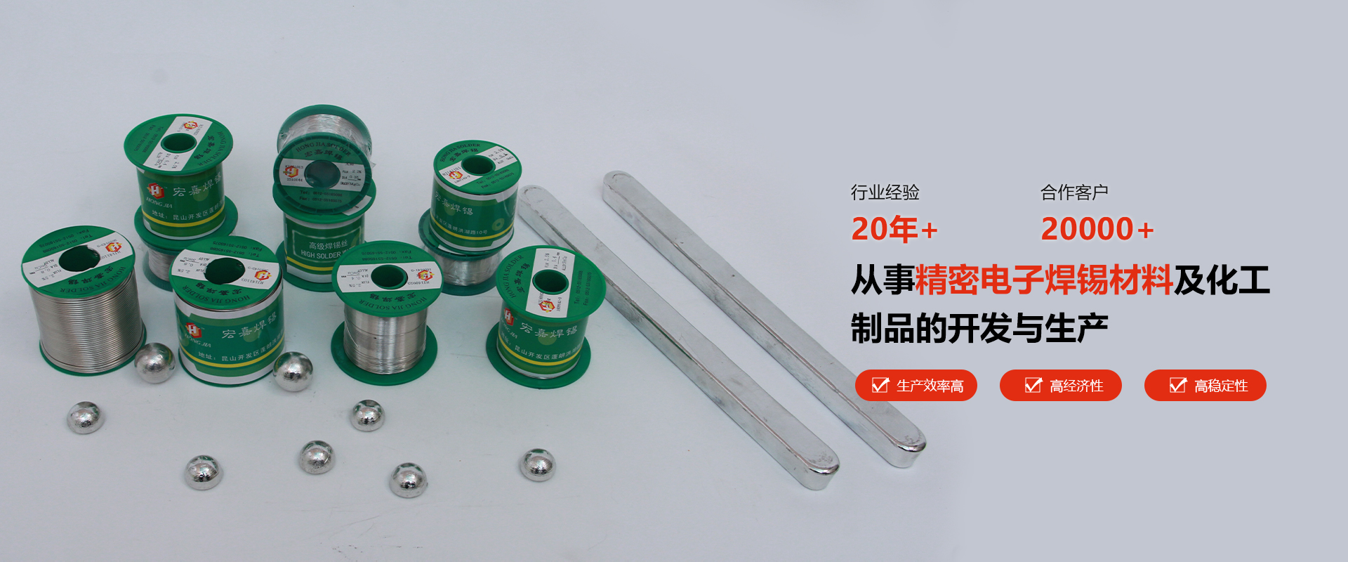 昆山市宏嘉焊錫制造有限公司成立于二零零七年,從事精密電子焊錫材料及化工制品的開發與生產,產品主要有:焊錫條、焊錫絲、焊錫膏、電鍍陽極板、純錫半球、助焊劑等。